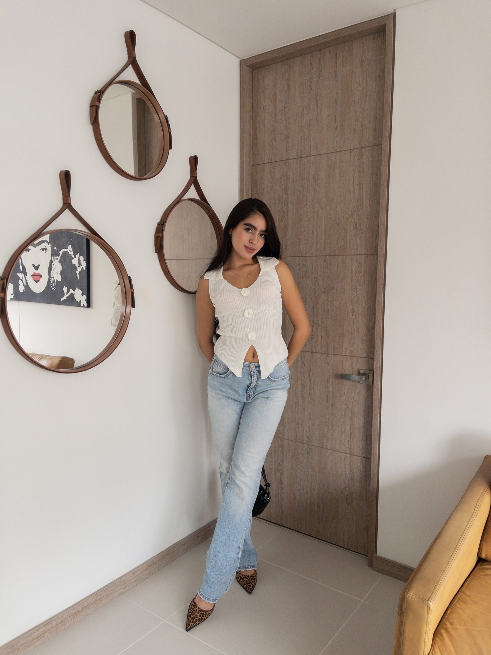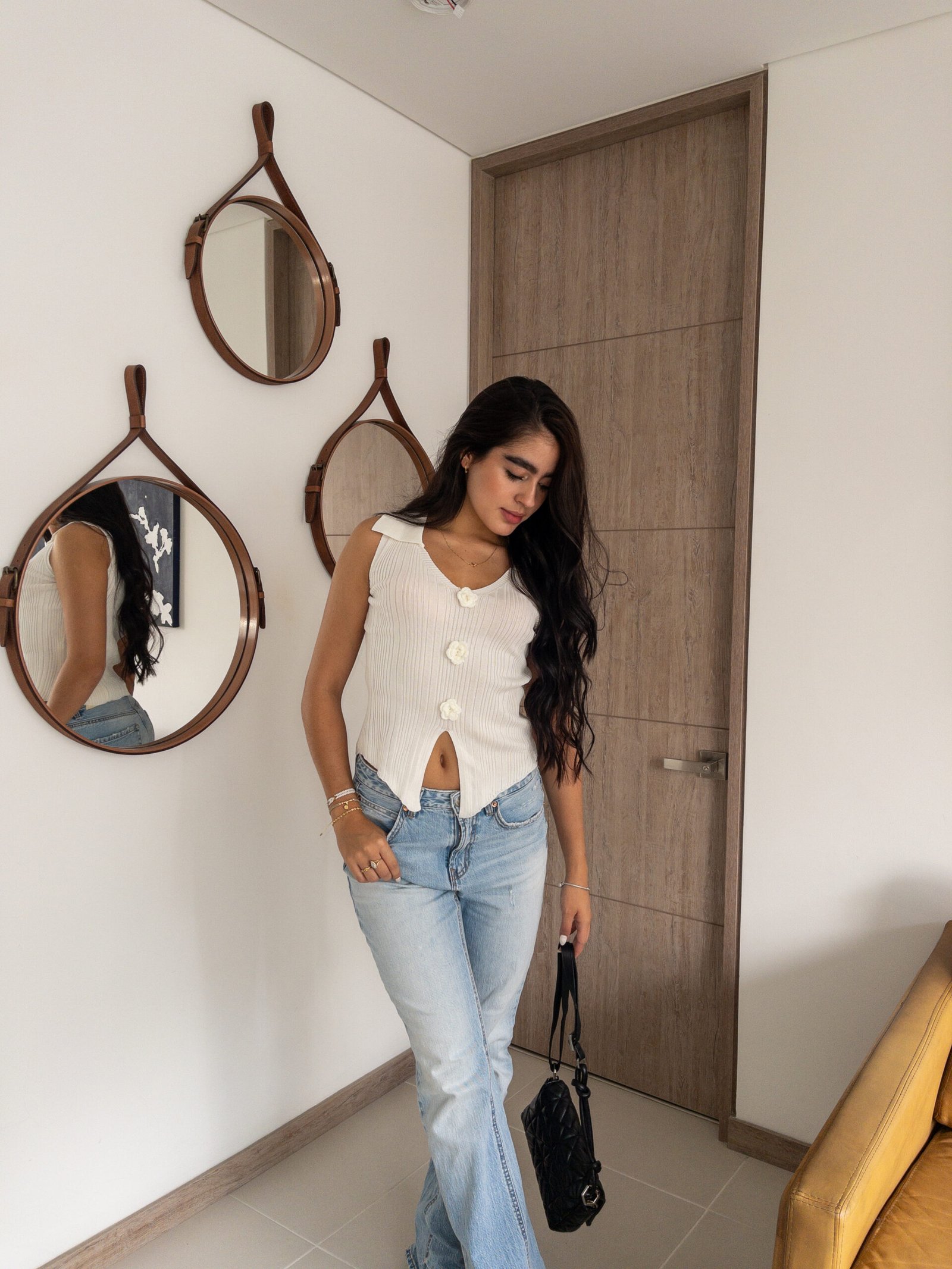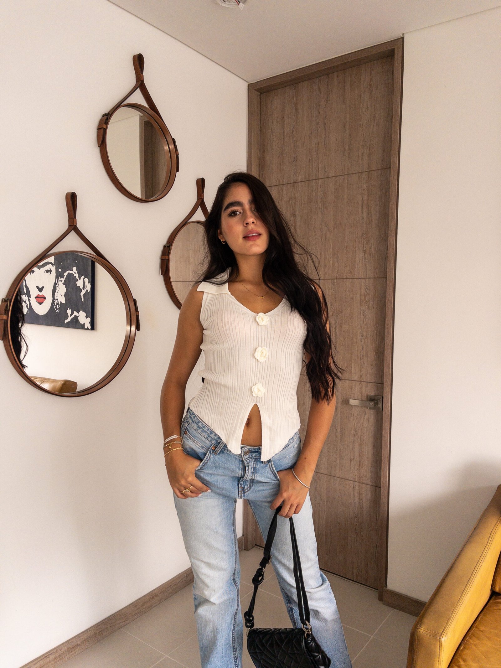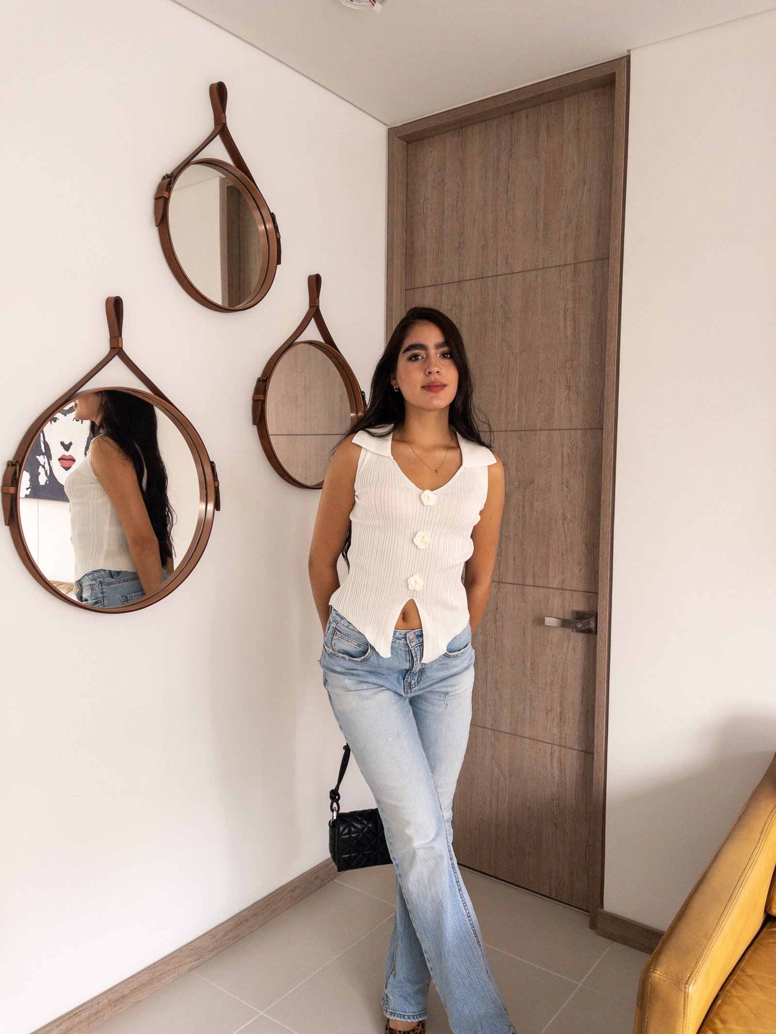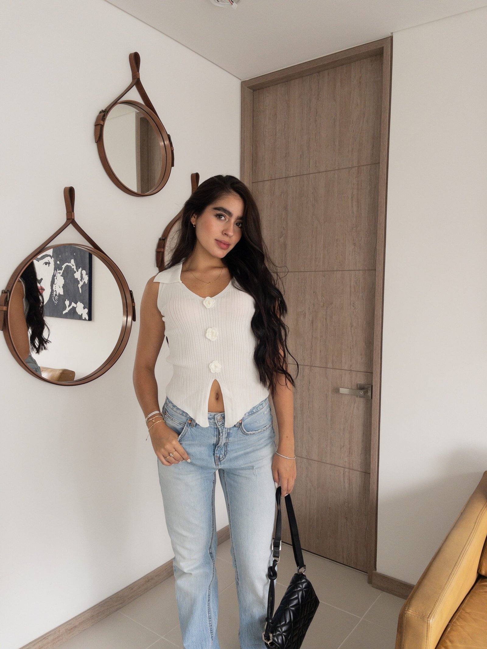 El chaleco tejido sin mangas con cuello camisero y pequeñas flores bordadas al frente es la definición perfecta de sofisticación y atención al detalle. Su diseño equilibrado, que combina delicadeza y estilo, lo convierte en una prenda esencial para quienes buscan realzar sus looks diarios con un toque único. Las flores bordadas añaden un aire fresco y femenino, garantizando un estilo que nunca pasa desapercibido.
