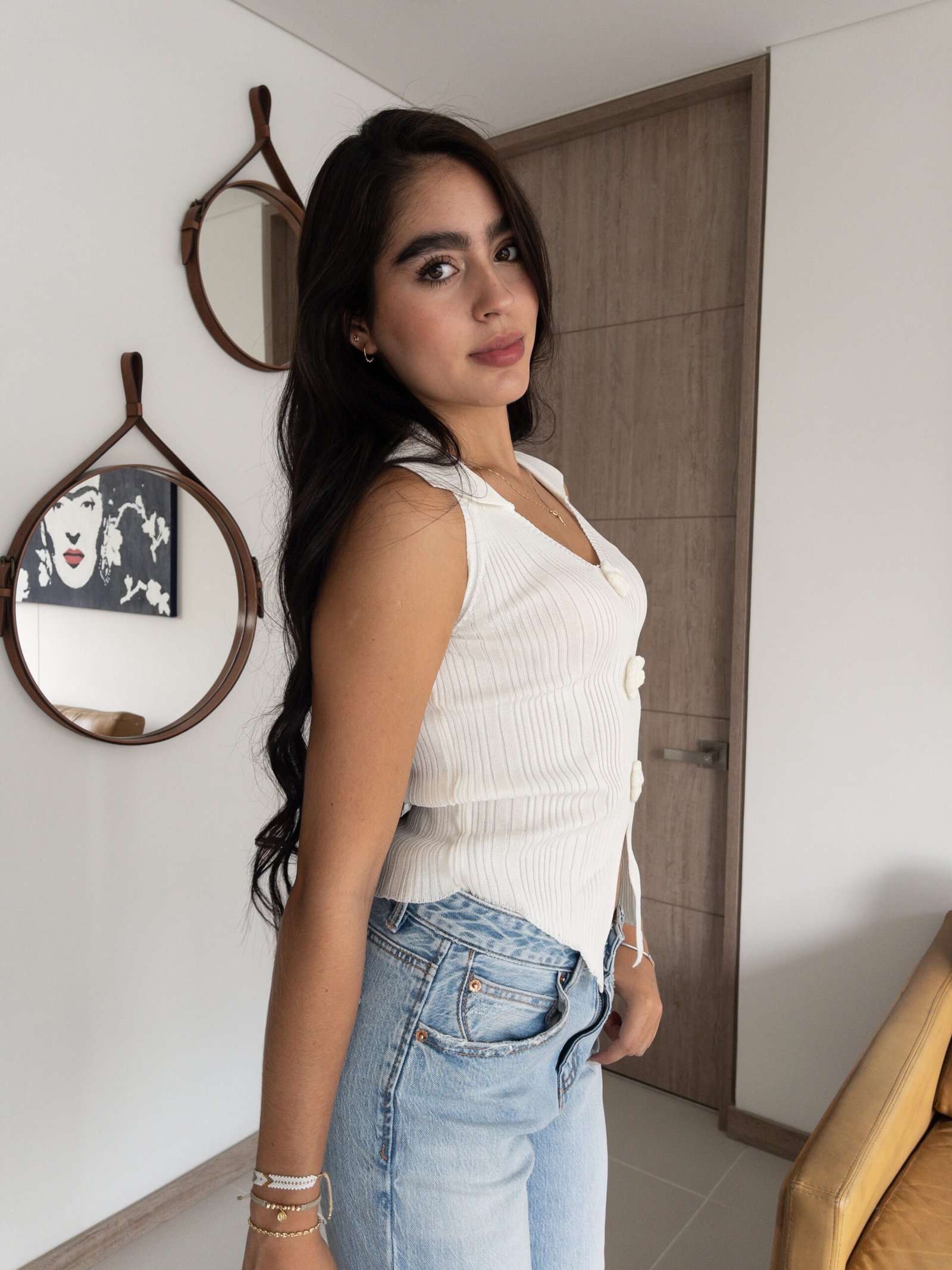 Este chaleco ha sido confeccionado en punto acanalado elástico, una técnica que no solo asegura la comodidad, sino que también estiliza la silueta de forma natural. La textura flexible permite un ajuste perfecto que se adapta al cuerpo sin comprometer la libertad de movimiento. Es una prenda que se siente tan bien como luce, diseñada para que te sientas segura y sofisticada todo el día.