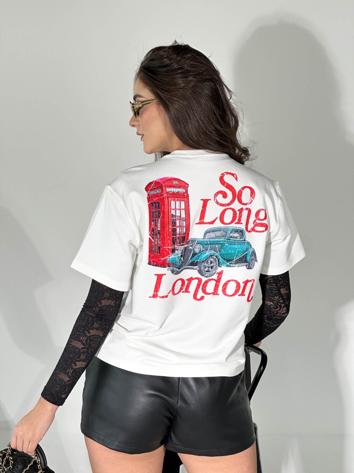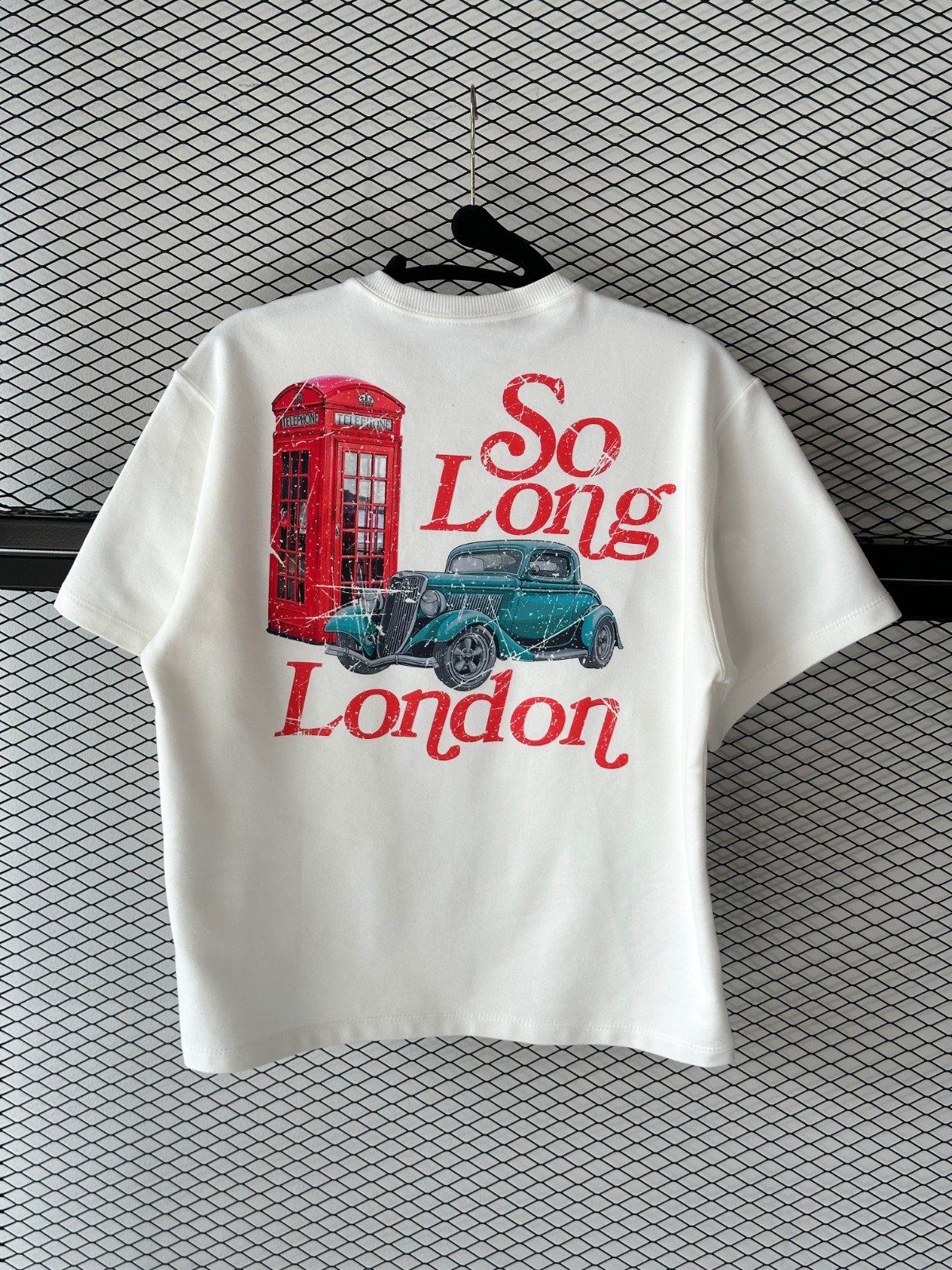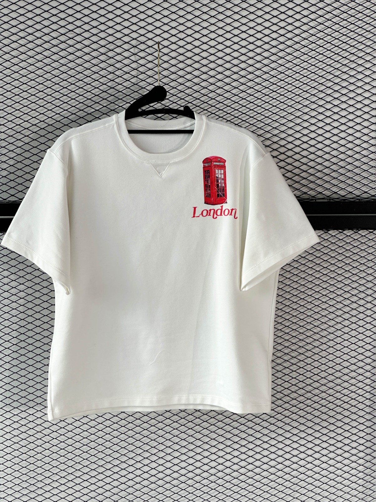 Camiseta blanca con estampado de London, estilo oversize elaborada en tela premium